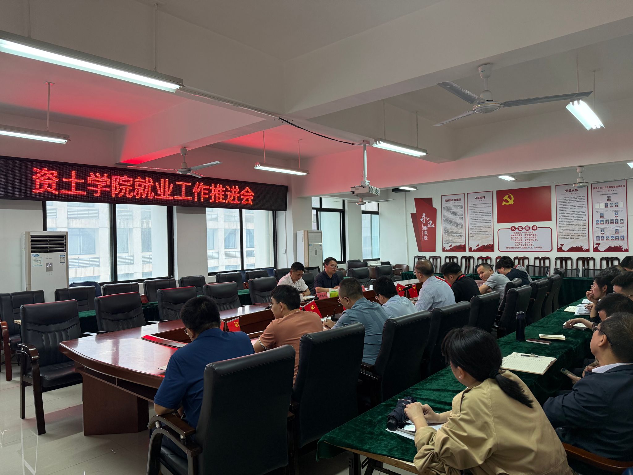 会上,刘俊峰全面介绍学院当前就业情况,并重点汇报 2025 届毕业生就业工作进展,内容涵盖总体就业去向落实情况、未就业学生现状、困难毕业生帮扶情况及考研动态。他深入梳理就业工作的重点与难点,并结合学院实际,提出针对性的下一步工作计划,明确6月底学院整体就业率目标。涂黎明对就业详细情况进行了补充。