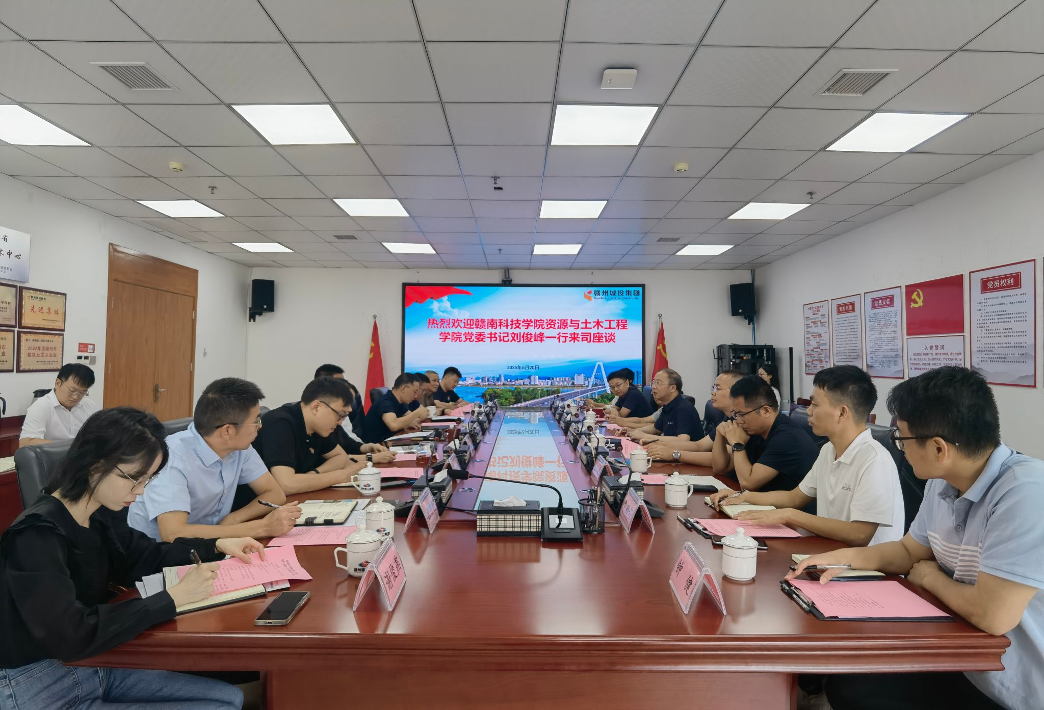 本网讯:为深化产教融合、推进校企合作,6月20日上午,金年会jinnianhuicom党委书记刘俊峰率队前往赣州城投集团旗下的赣州建工集团、赣州城投建工集团、虔州城物贸公司开展访企拓岗及校企合作调研活动。学院党委委员代靖怡,土木工程教研室主任易凌等多位专任教师及博士参与此次活动。活动由赣州城投集团党委委员、副总经理,赣州建工集团董事长赖连洪主持。