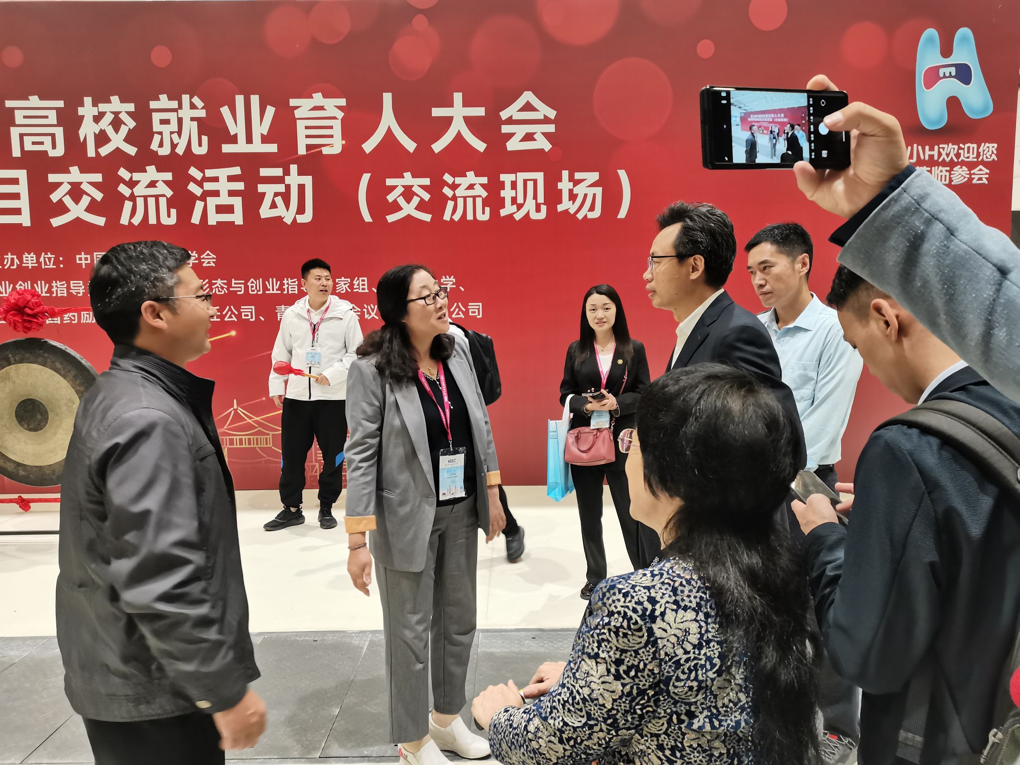 交流会现场,教育部高校学生司副司长吴爱华与魏炳辉一行进行了简短的沟通交流,为金年会官网如何深化高校就业育人实践、促进大学生高质量充分就业提供新视角。