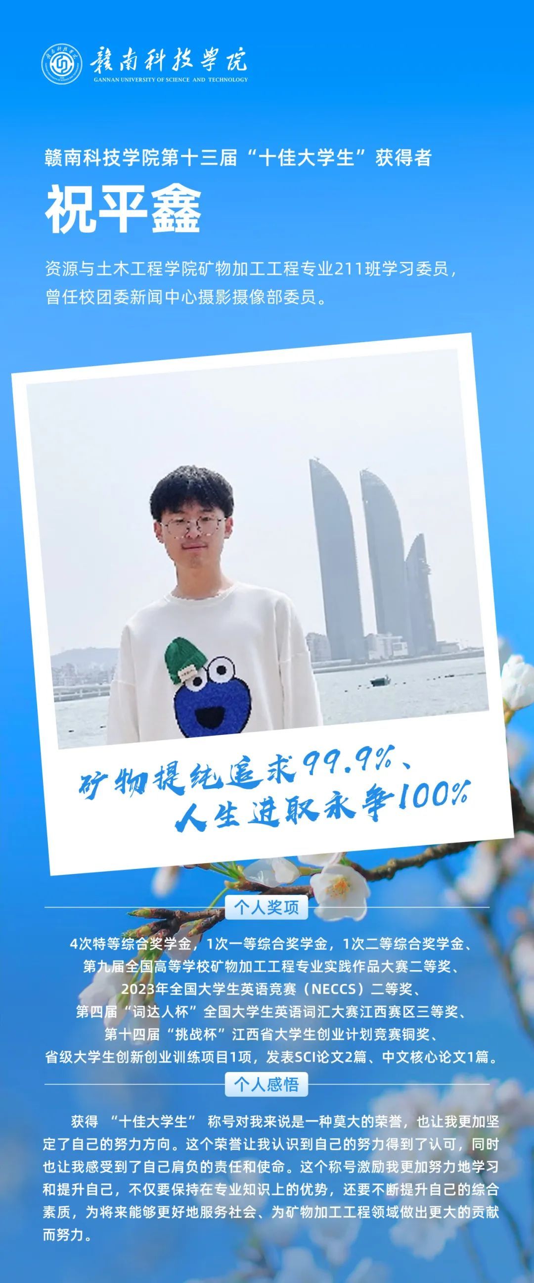 榜样引领|第十三届“十佳大学生”矿加211祝平鑫