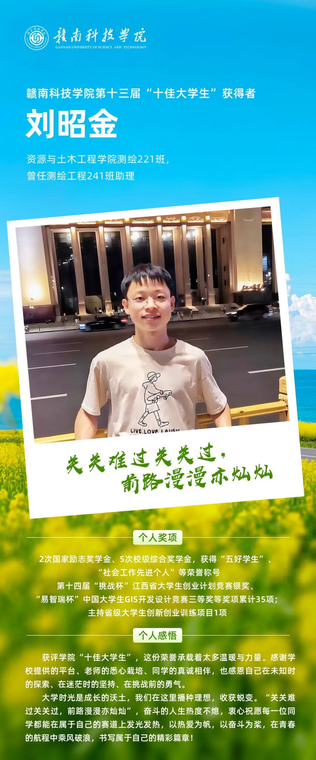 榜样引领|第十三届“十佳大学生”测绘221刘昭金